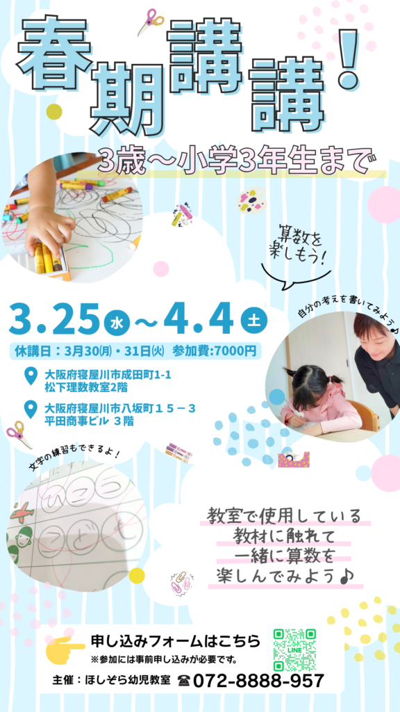 今後とも、ほしぞら幼児教室をどうぞよろしくお願い申し上げます。